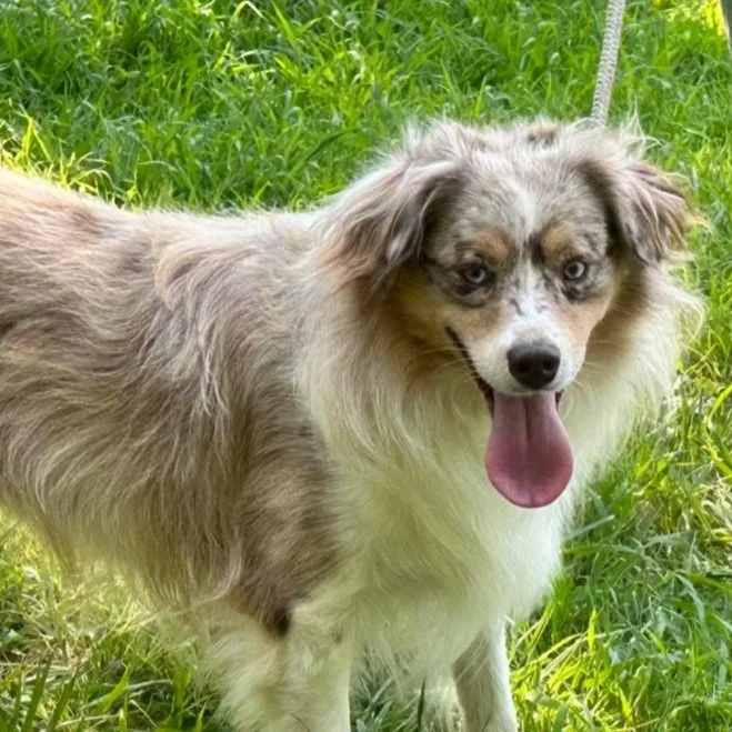 Introducing Belle, our adventurous Mini Australian Shepherd with an insatiable love for travel! Whether she’s enjoying a scenic ride in the car, zipping along on a golf cart, or cozying up in her bike trailer, Belle embraces every journey with joy. Her sweet and gentle spirit shines through as she effortlessly captures the hearts of everyone she meets.