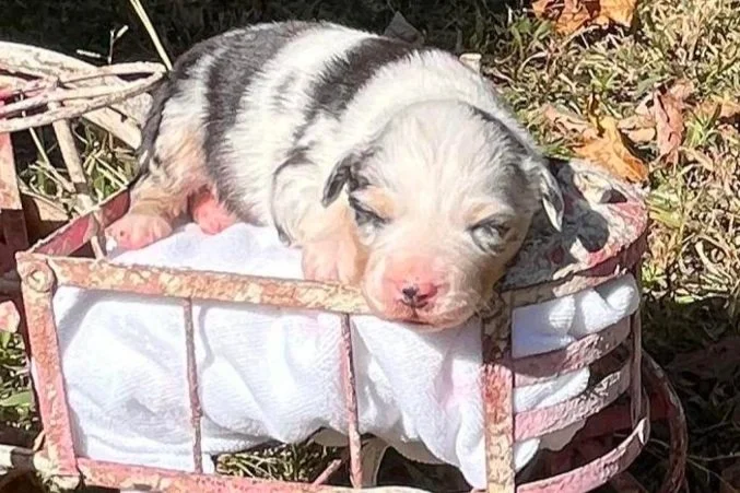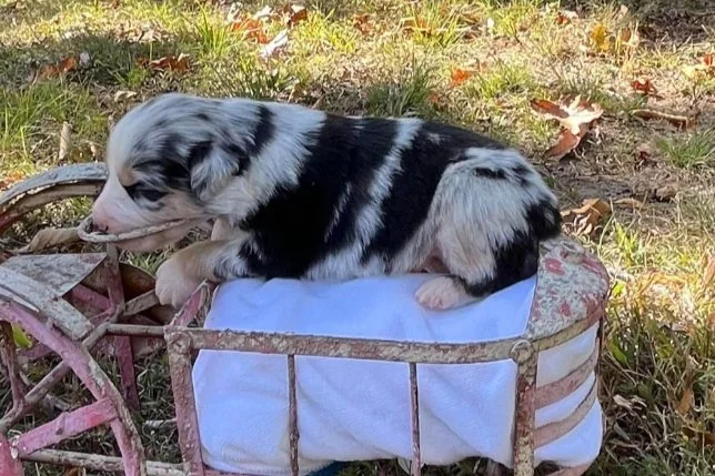 Check out this adorable litter of Mini Australian Shepherd puppies! This charming group features five females and two males, born October 7, 2024, and they’ll be ready for their forever homes around December 2nd.